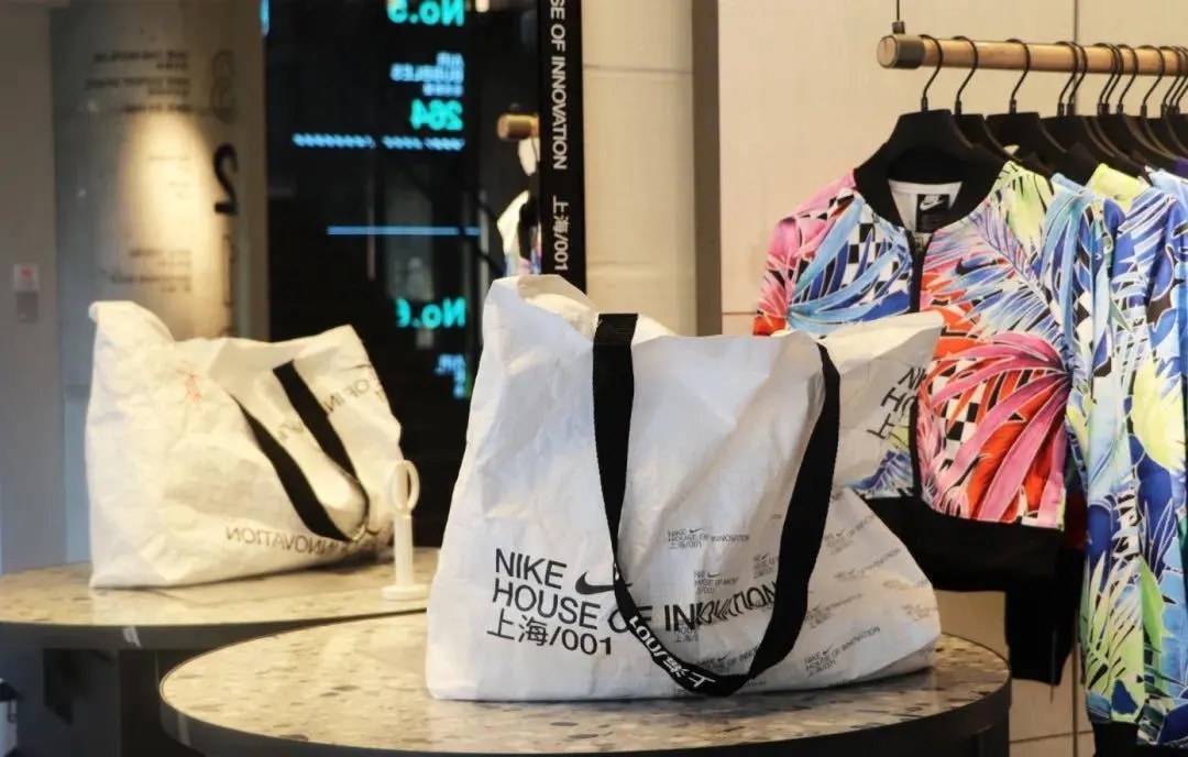 全球首家Nike House of Innovation為前來體驗的消費者們提供同樣具備創(chuàng)新精神的杜邦? Tyvek® 品牌材料設(shè)計制作的酷感十足的環(huán)保購物拎袋。