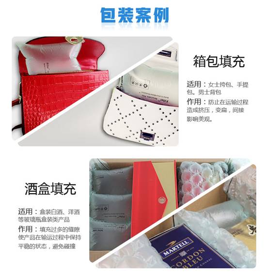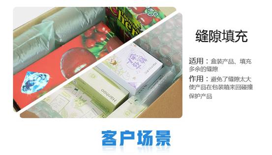 填充及裹包氣墊產(chǎn)品。通過(guò)SGS測(cè)試,符合ROHS標(biāo)準(zhǔn),是新型環(huán)保的包裝緩沖材料。