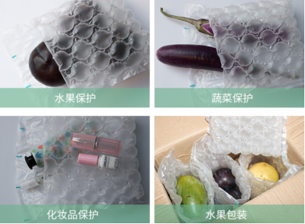 適用于電子產(chǎn)品、化妝品、生鮮水果、小家電等防護包裝。葫蘆膜具有抗震、防摔、防破損、緩沖的效果,可以有效減小快遞在運輸過程中對物品的擠壓、震動及摩擦等,對物品具有一定的保護作用。